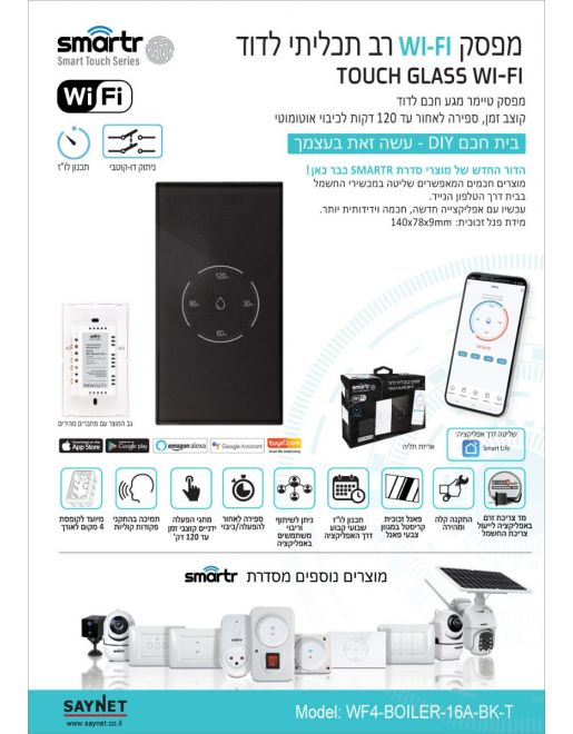 מפסק/טיימר WIFI לדוד אופקי לקופסה 3 מקום שחור