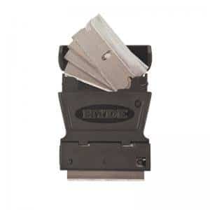 - להסרת ציפויים, צבע ומדבקות מזכוכית, מראות או שמשות.