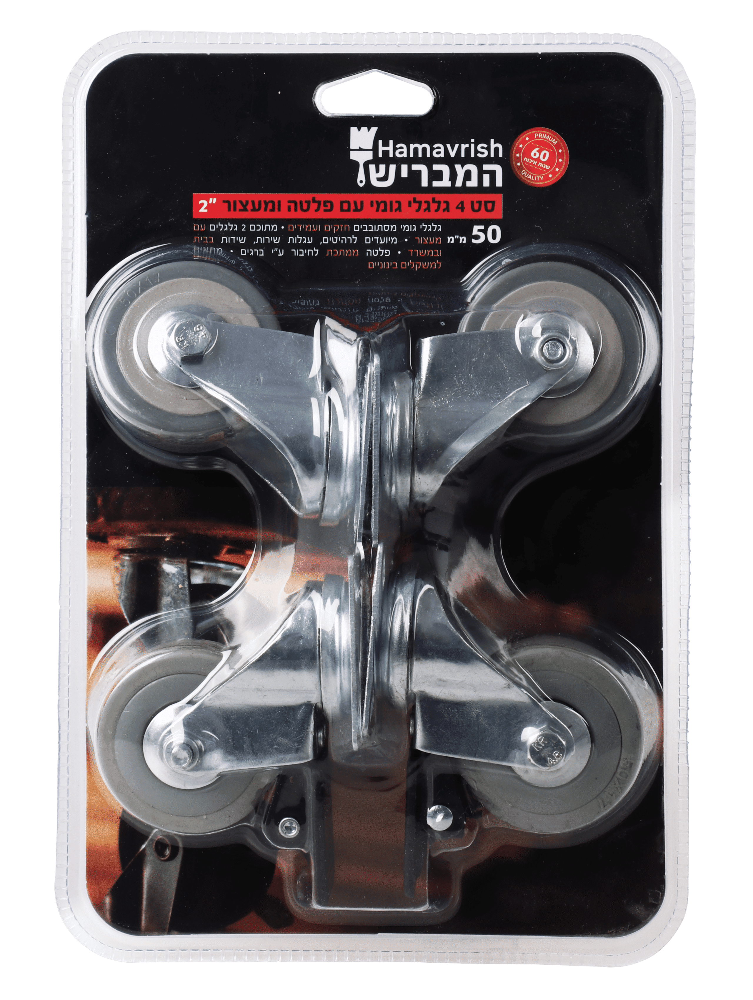 סט 4 גלגלים גומי עם פלטה + מעצור 50 מ"מ "2