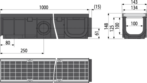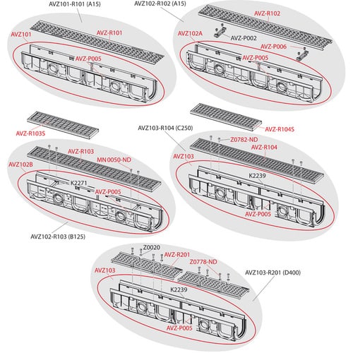 תעלת ניקוז 100 מ"מ עם מסגרת AVZ102-R103