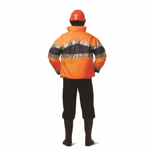 מעיל ניילון אוקספורד D300 עבה ואיכותי עם פסים זוהרים ברוחב 5 ס"מ תוצרת 3M עם הגנה מלאה מפני גשם, מומלץ לבטיחות בעבודה.