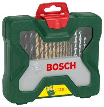 BOSCH סט 30 חלקים בוש כולל ביטים ומוביל מקדחים לעץ, למתכת ווידיה